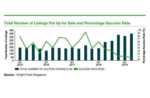 The total sales quantum of properties successfully sold in auction, being SGD 54.12 million in 2018 is 7-year low since 2012.